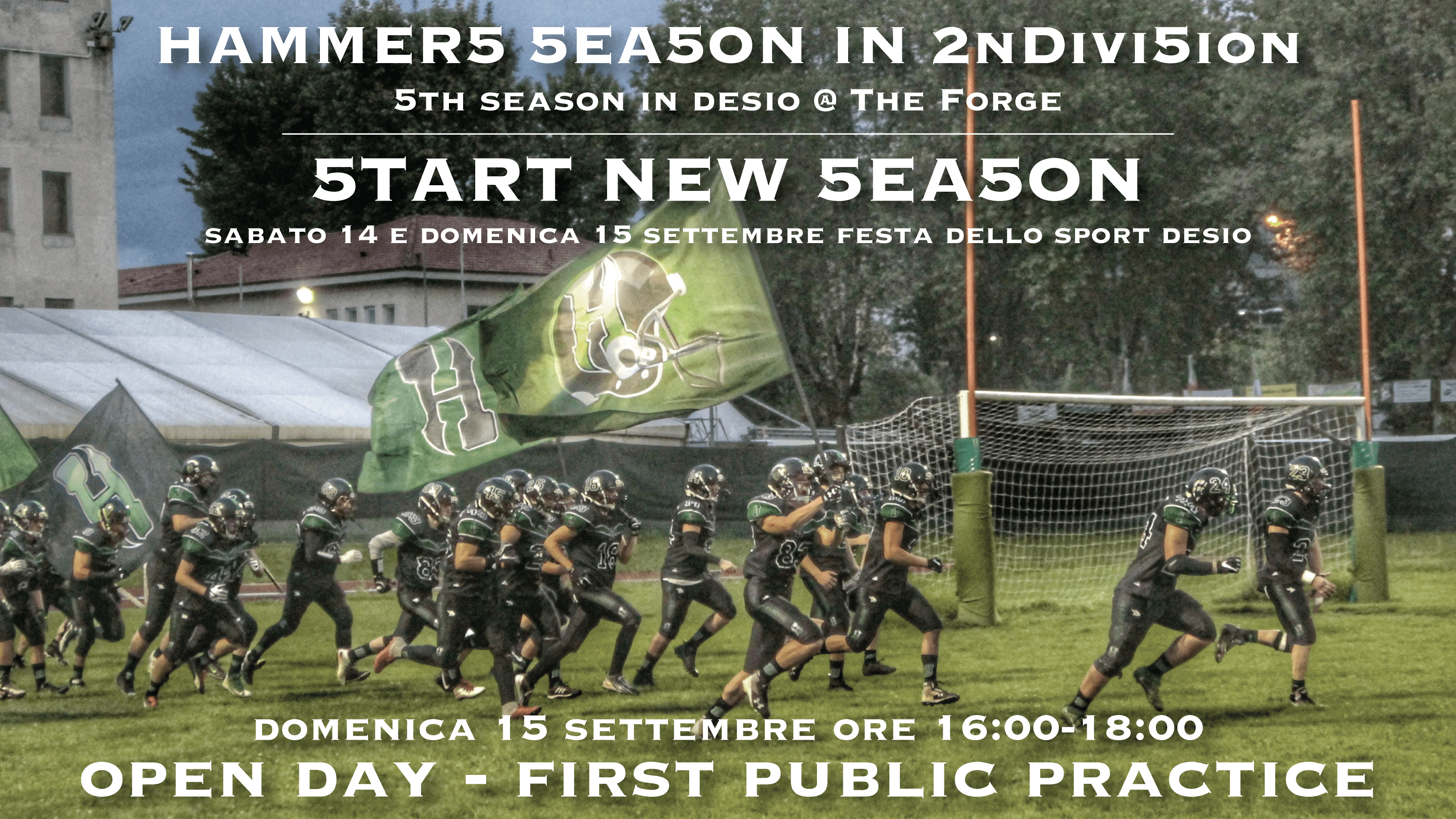 Il momento migliore per iniziare a giocare a football americano è alle porte: il primo allenamento della 5^ stagione degli Hammers in Seconda Divisione, il 5^ anno al centro sportivo comunale di Desio (The Forgearticolo completo